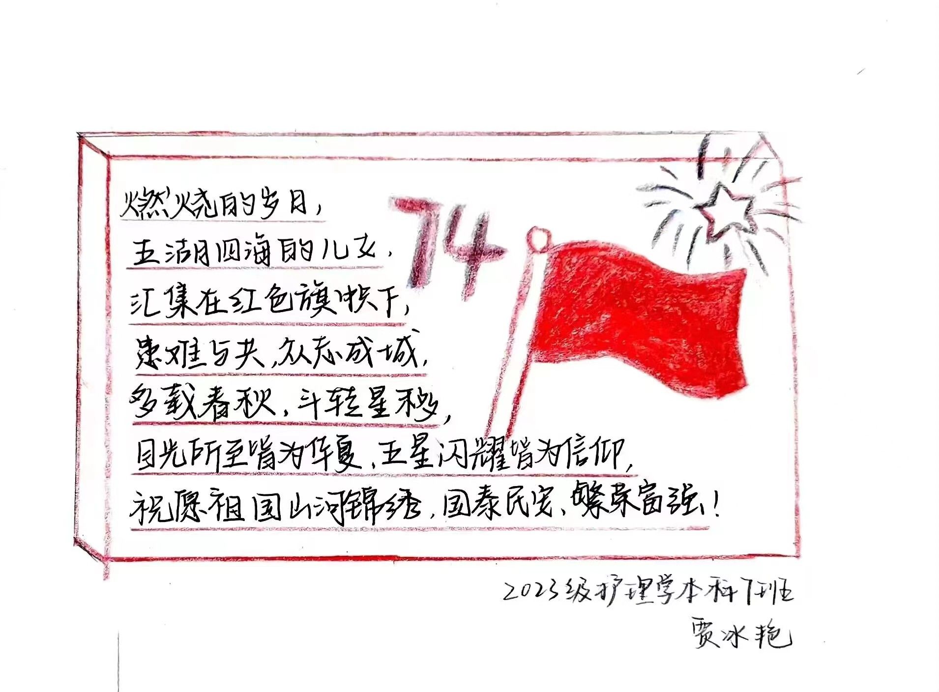 接下来,让我们共同欣赏学生们的优秀作品,倾听他们对祖国的真情告白吧!
