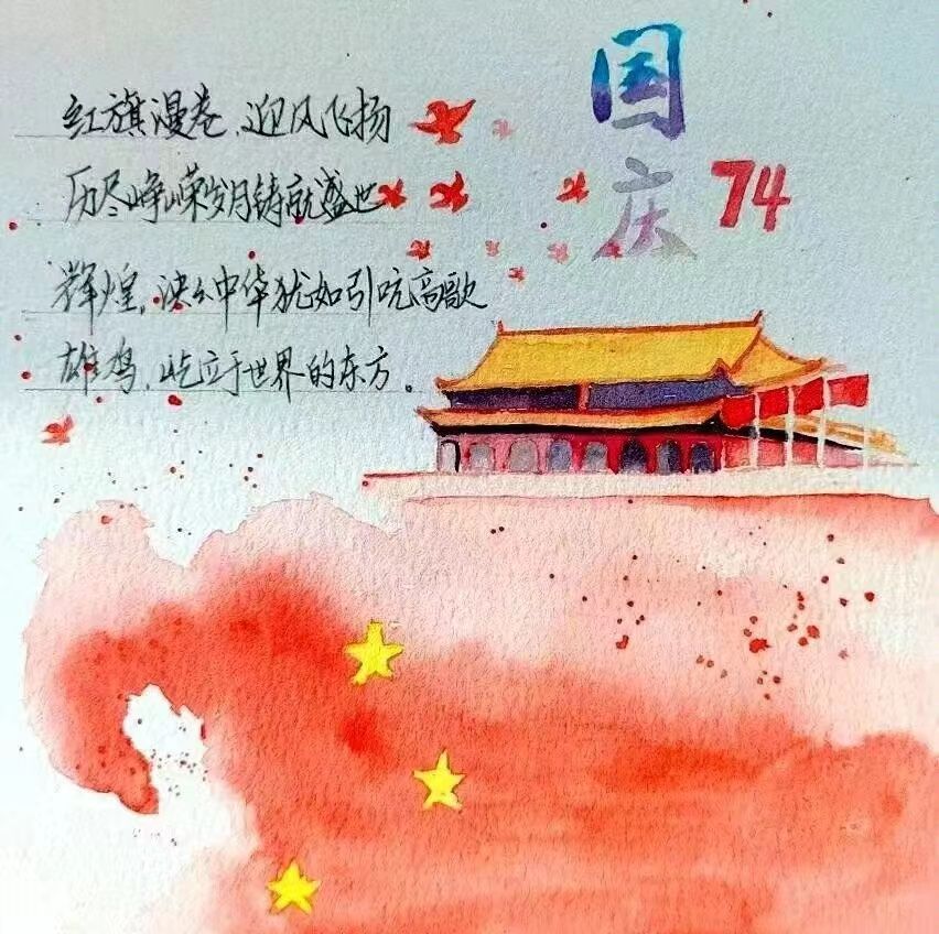 十月,秋深,到处飘扬着中国红。学生们以青春之名,书写清澈挚爱,表达对祖国的真挚祝愿。十月是晚秋里的薄雾,是黄昏时的晚风,是最热烈的那一抹中国红!这一抹中国红,惊艳了时光,沉淀了灵魂,将独属于中国人的浪漫挥洒到了极致。
