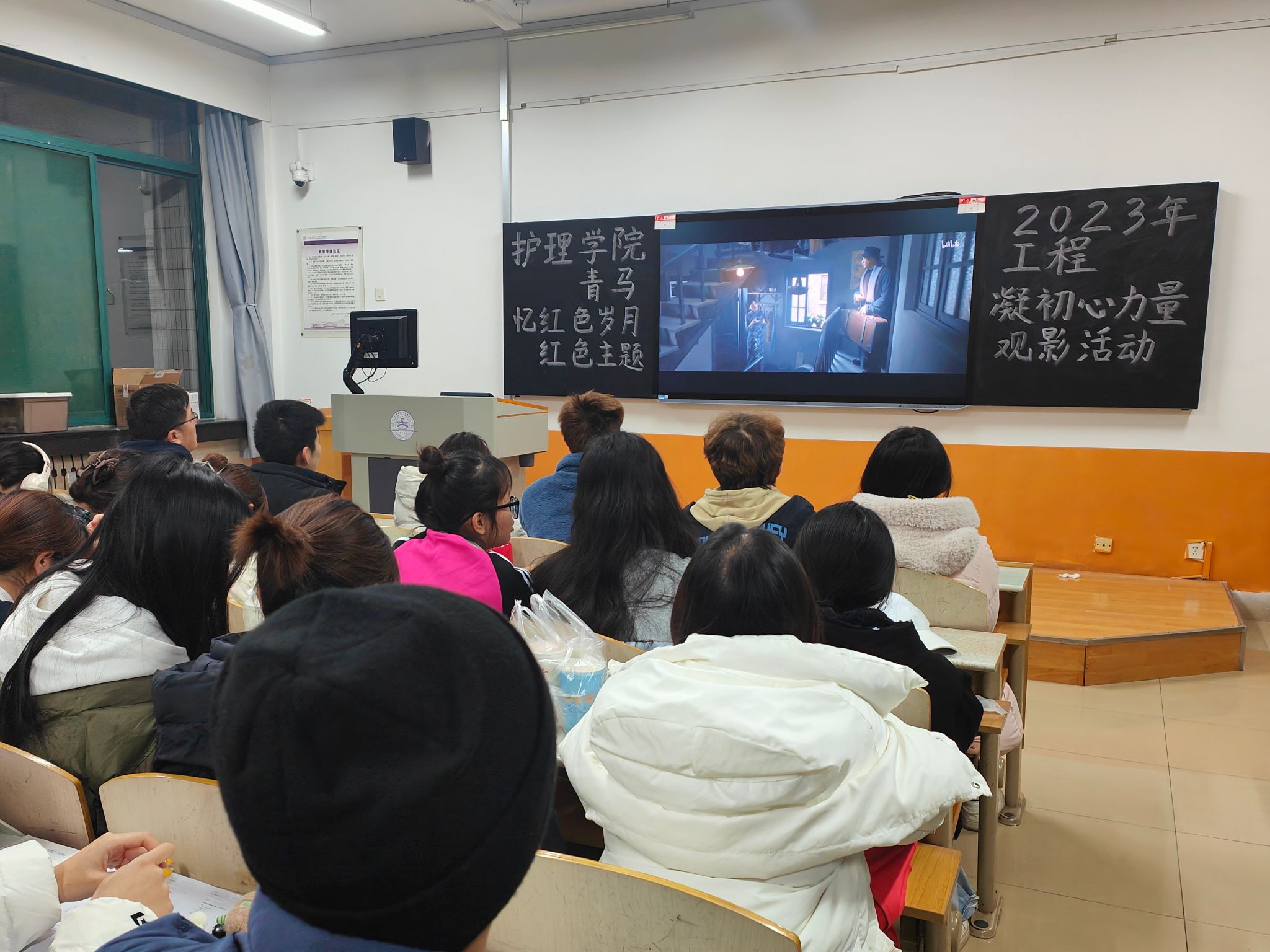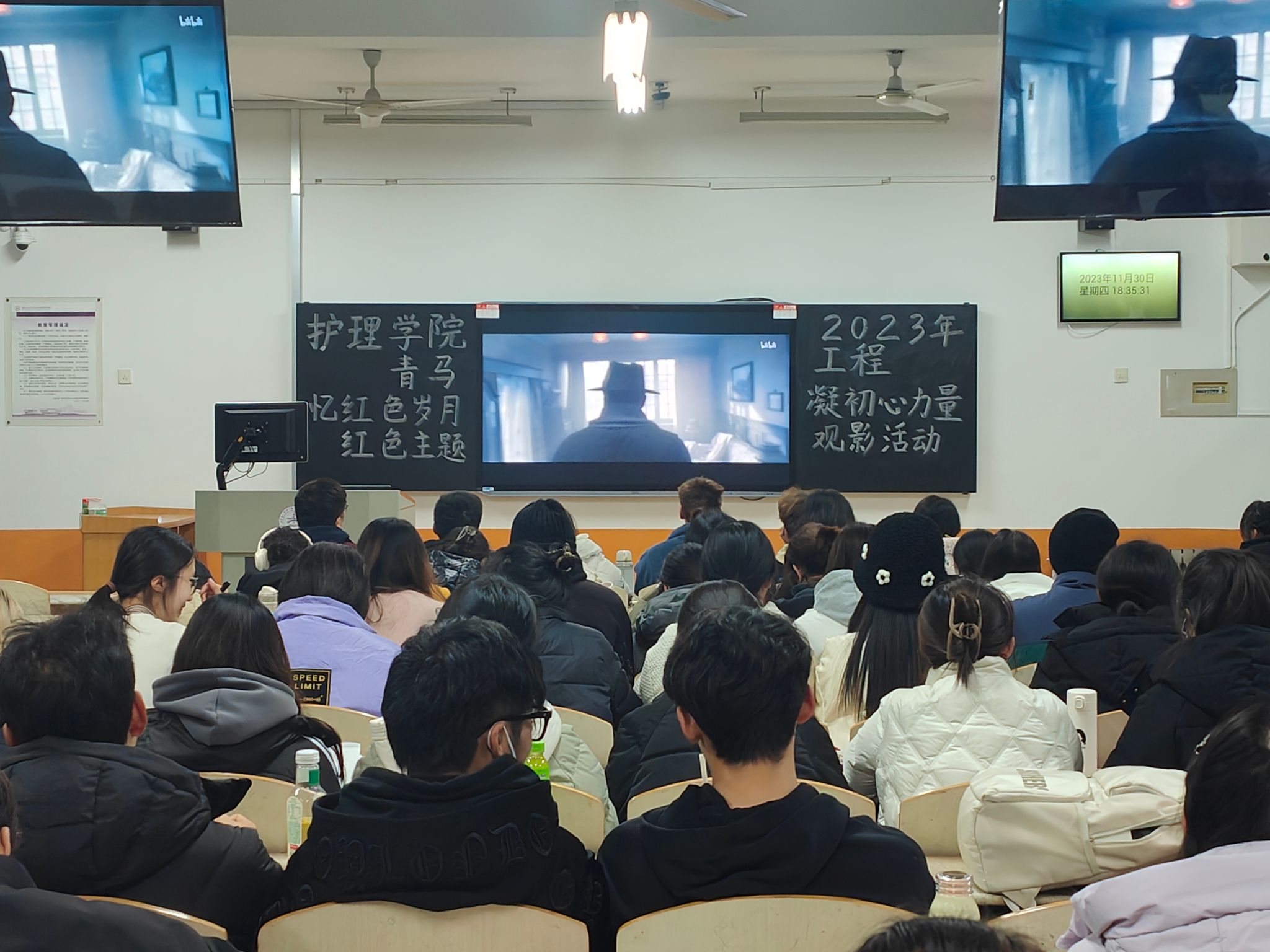 为培养坚定的青年马克思主义者,传承红色基因,赓续共产党人精神血脉,努力做好新时代党的青年工作,引导大学生担强国重任,做有为青年,11月30日,护beat365官方网站在教学北楼A3014教室举办2023年青马工程“忆红色岁月,凝初心力量”红色主题观影活动。青马班全体学员参加本次观影。