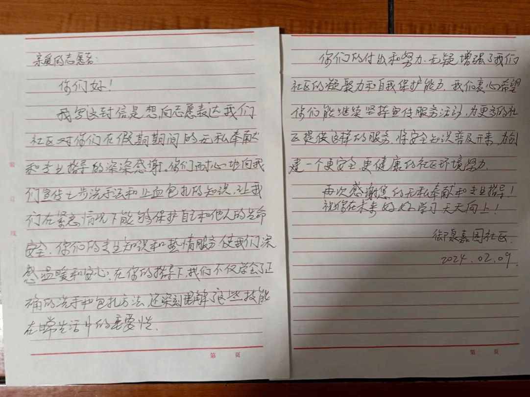 感谢社区给予我们开展此次志愿活动的机会,正是因为你们的积极配合,此次志愿活动才得以顺利进行,让我们实打实地向群众宣传应急救护方法。