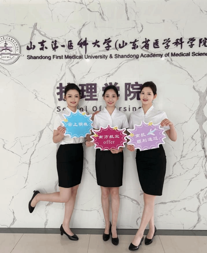 近日,beat365官方网站2021级护理学(航空方向)专业的3名学生参加了中国南方航空集团有限公司(以下简称“南航”)面试并顺利通过,这是自2021年我院与北京圣辅国际教育科技有限公司(以下简称“北京圣辅”)合作办学以来,首届学生提前一年完成高质量就业。