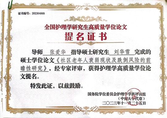 护beat365官方网站研究生在全国“护理学研究生高质量学位论文”评选中喜获佳绩