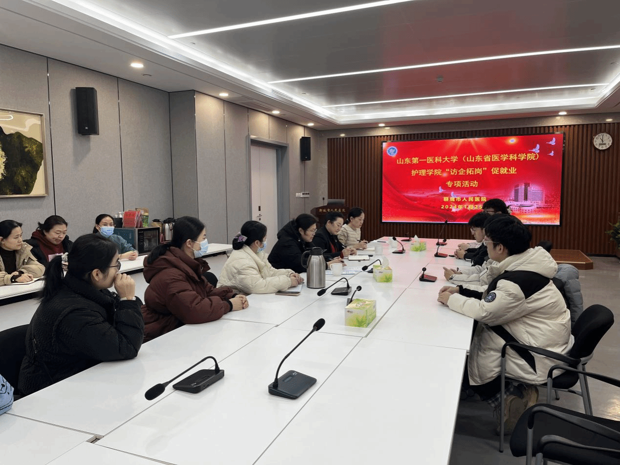 为深入贯彻落实校(院)“访企拓岗促就业”专项行动的工作部署和要求,深入对接用人单位需求,拓宽毕业生就业渠道,1月24日—26日,护beat365官方网站教师分别前往广东佛山、青岛、临沂、聊城、济宁、济南、泰安等15家医院实地开展“访企拓岗”。