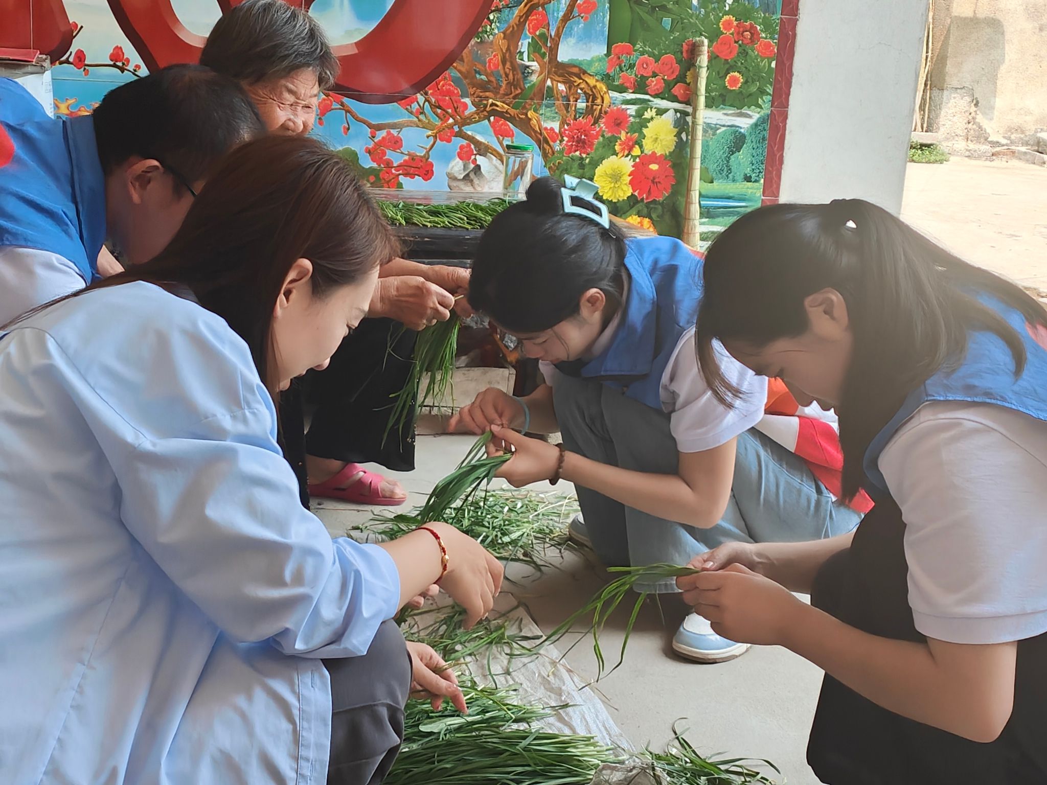 活动伊始,队员们有序入户为老人测量血压和血糖,根据测量结果为老人提供健康生活及饮食相关建议,并为生活较为困难的村民送去牛奶等爱心物资。活动中,队员们主动为患有眼疾的老人择韭菜、打扫庭院,慰问其生活情况,在为老人干家务的同时,更为他们带来心灵上的慰藉,增加他们在生活上的幸福感。走访过程中,队员们还了解到一位孤寡老人的生活状况,她向队员们倾诉了自己种植的树木被风雨摧毁后内心的悲痛,面对这一情况,队员们主动安慰老人,为她提供专业的心理疏导,并帮助其打扫房间,老人对乡镇政府政策与队员们的关心表示由衷的感谢。