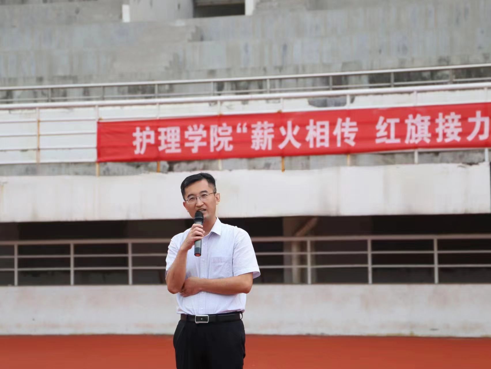 为庆祝新中国成立74周年,加强大学生爱国主义教育,坚定理想信念,与祖国共奋进,9月27日,护beat365官方网站举办“薪火相传 ,红旗接力”主题接力跑活动。本次活动具体组织工作由学院学生会承担,学院新媒体中心、自管会参与相关工作。护beat365官方网站党委书记张延玲参加活动。