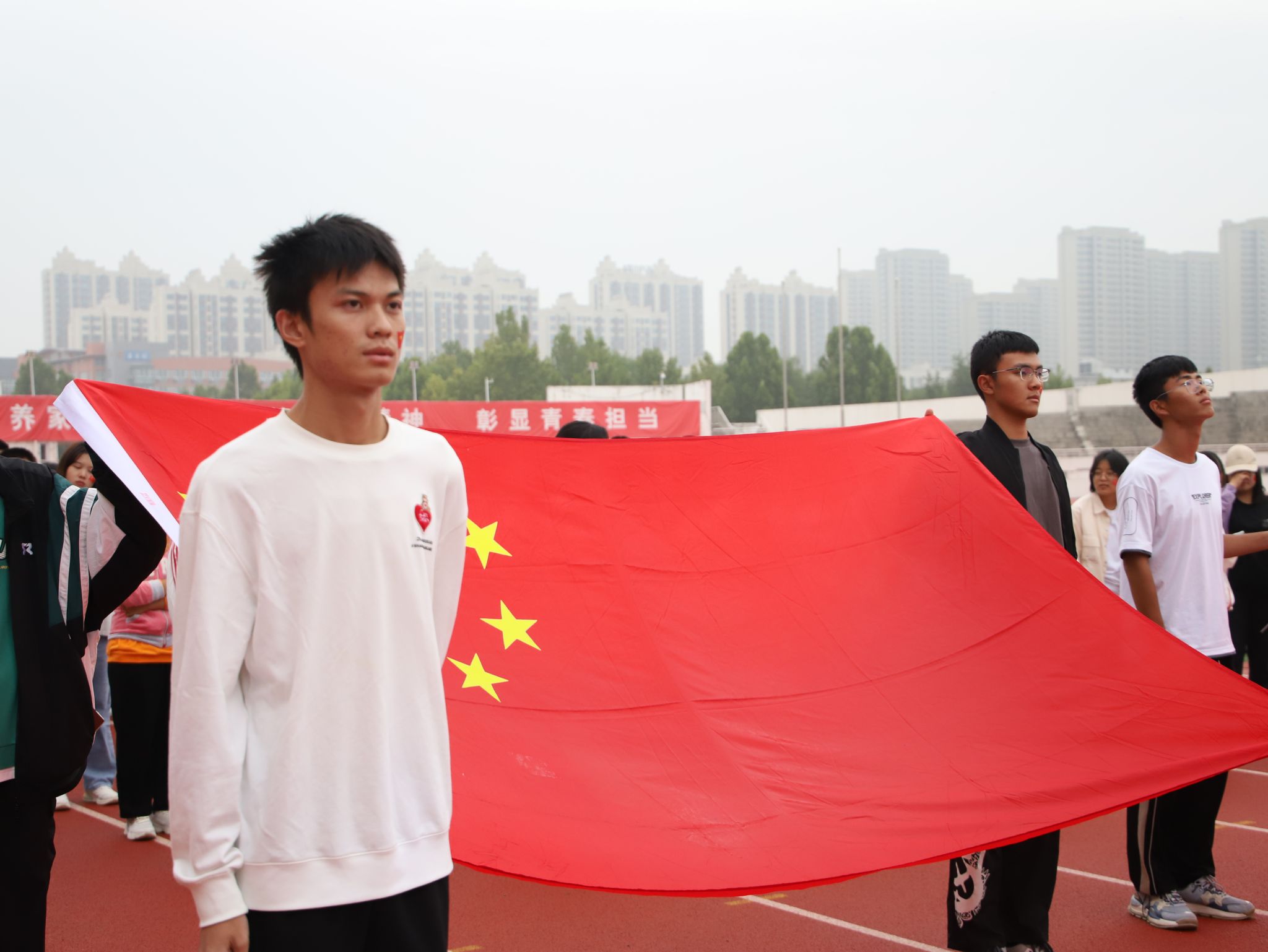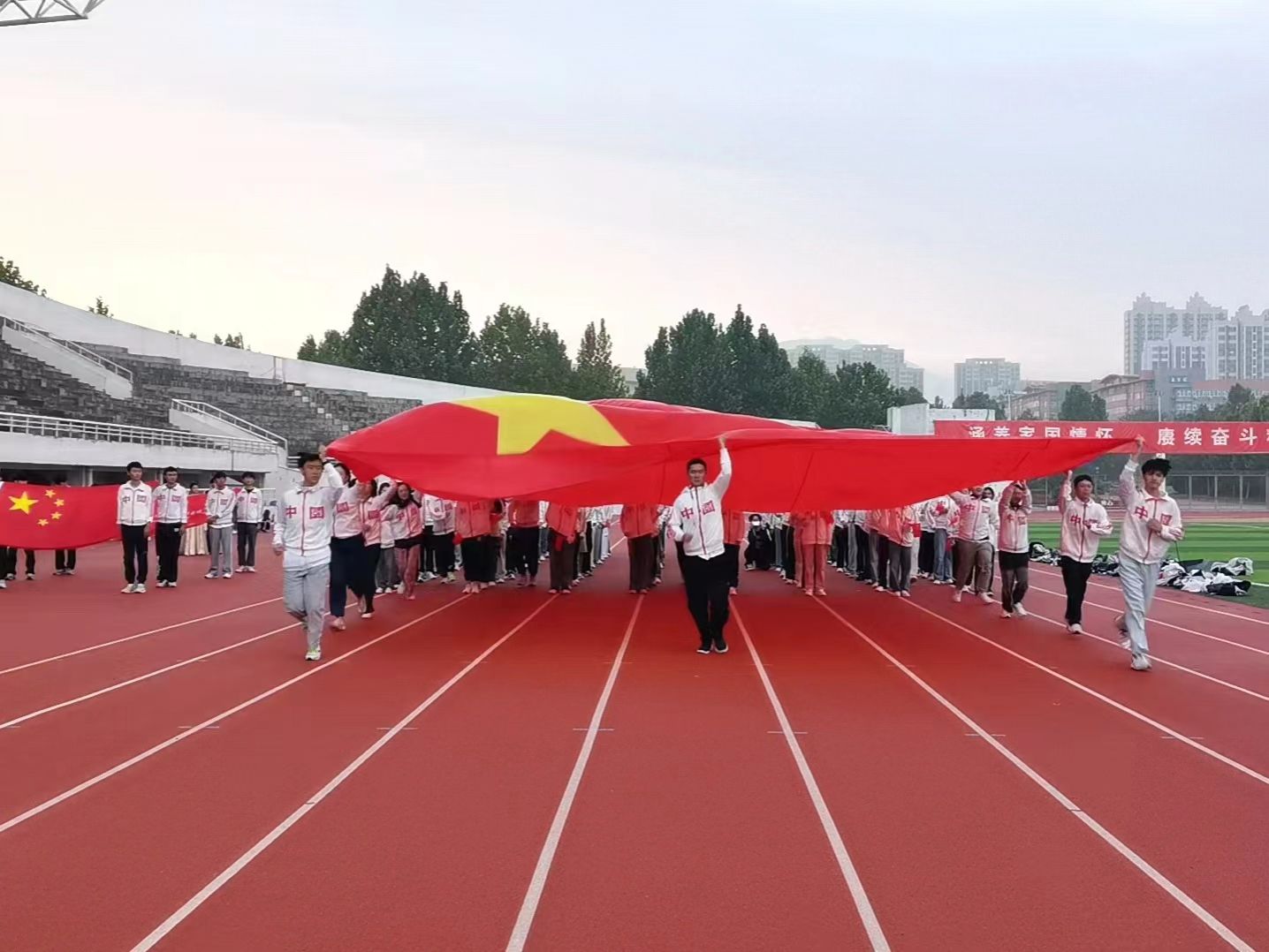 活动现场,每个人手上都挥舞着“爱国”的红色旗帜,每个人的心里都承载着“祖国”二字,每个人的脸上都写满了对祖国繁荣昌盛的自信与祝福。随着《我和我的祖国》悠扬婉转的旋律响起,活动正式开始。学院乘风悦跑团成员托举五星红旗,奔跑穿越悦跑人群后到达队伍最前方。在学院悦跑团成员的带领下,全体师生手持红旗围绕跑道开始慢跑,满目的中国红,为跑道渲染上一层青春的底色,勾勒出一幅热情洋溢的生动画面。