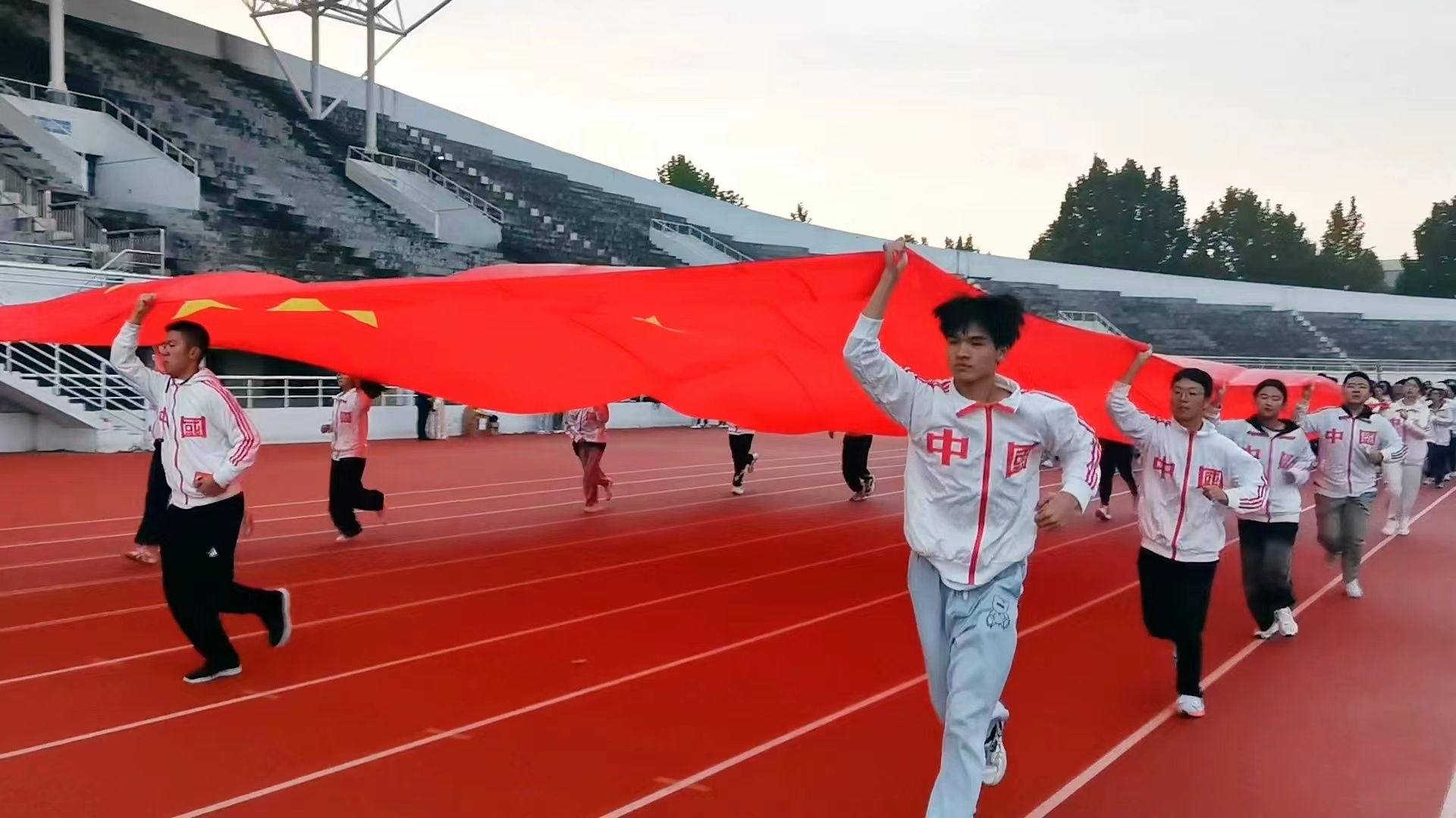 奔跑!爱国热情在前进的每一步中升华。震撼!朝气蓬勃的青春与手中飘扬的红旗交相辉映。舞动锦绣,同庆盛世。心如旗色一般炙热鲜红,奔跑的脚步如笔触般绘出青春的轨迹,信仰的力量在此时此刻光芒万丈。