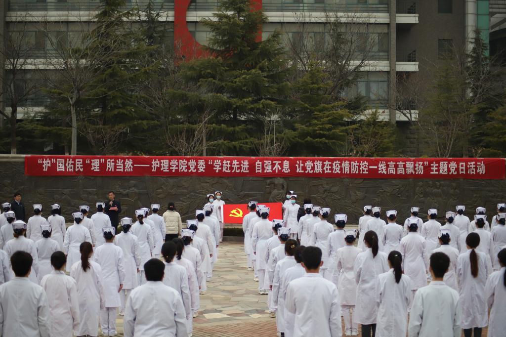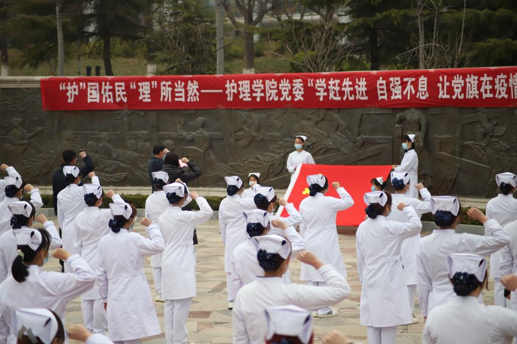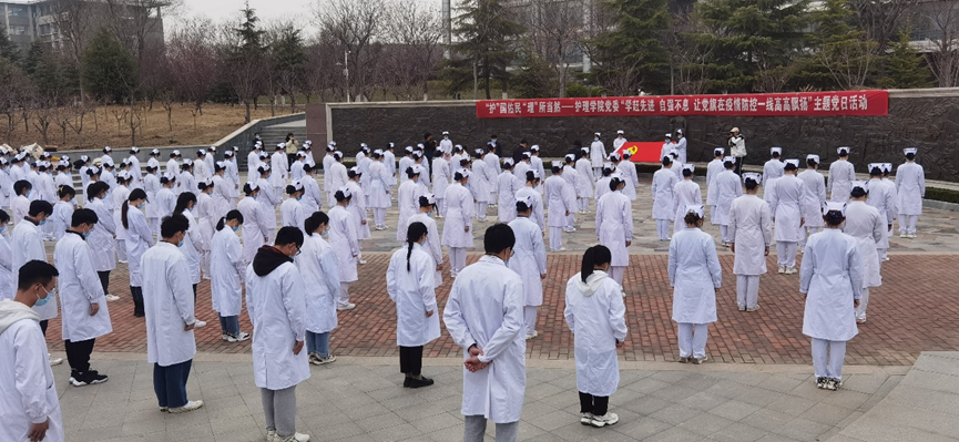 3月22日,护beat365官方网站党委在南丁格尔广场开展“ ‘护’国佑民 ‘理’所当然”暨“学赶先进,自强不息,让党旗在疫情防控一线高高飘扬”主题党日活动。学院党委书记张延玲参加活动,副书记林桦主持。