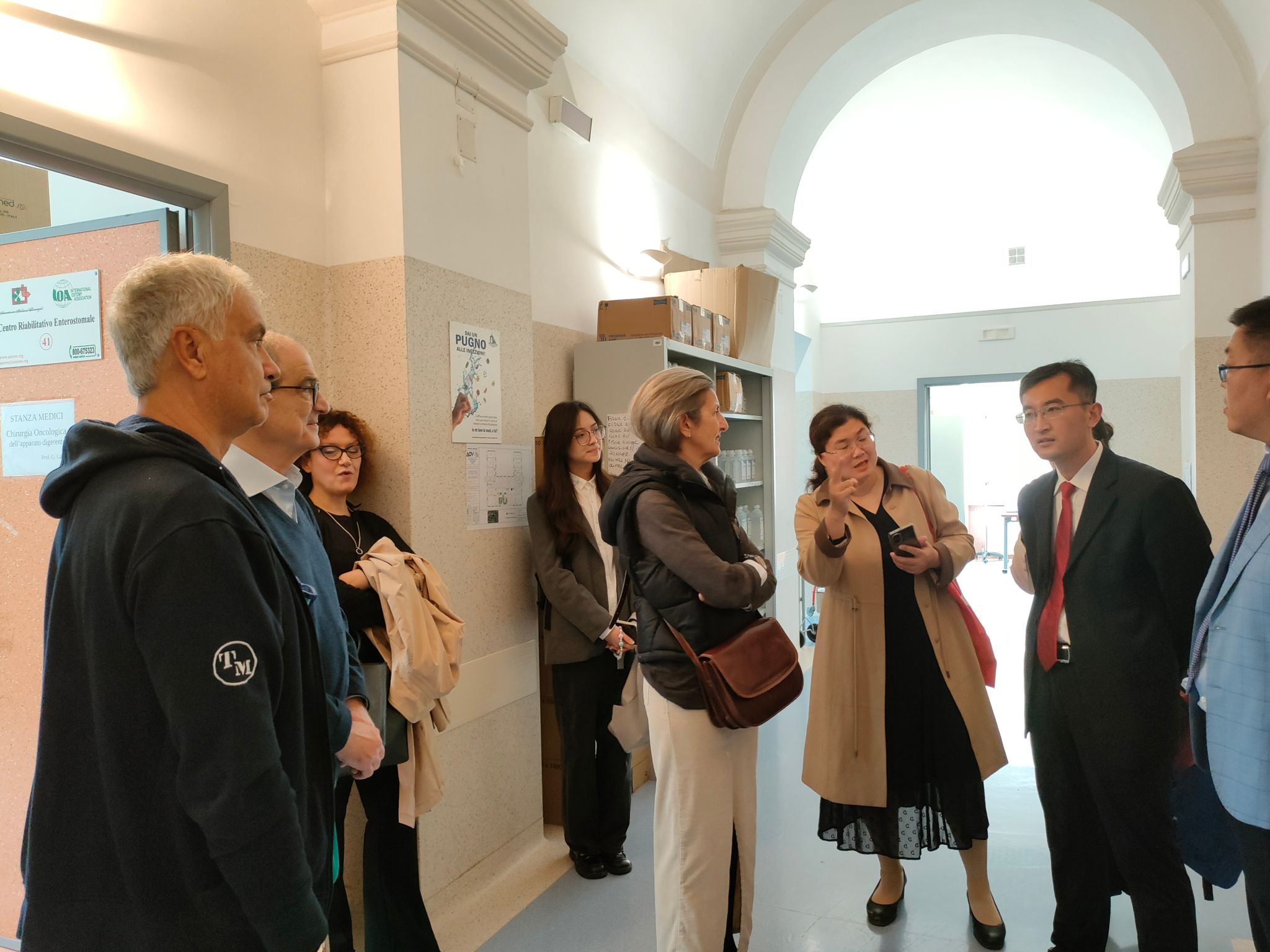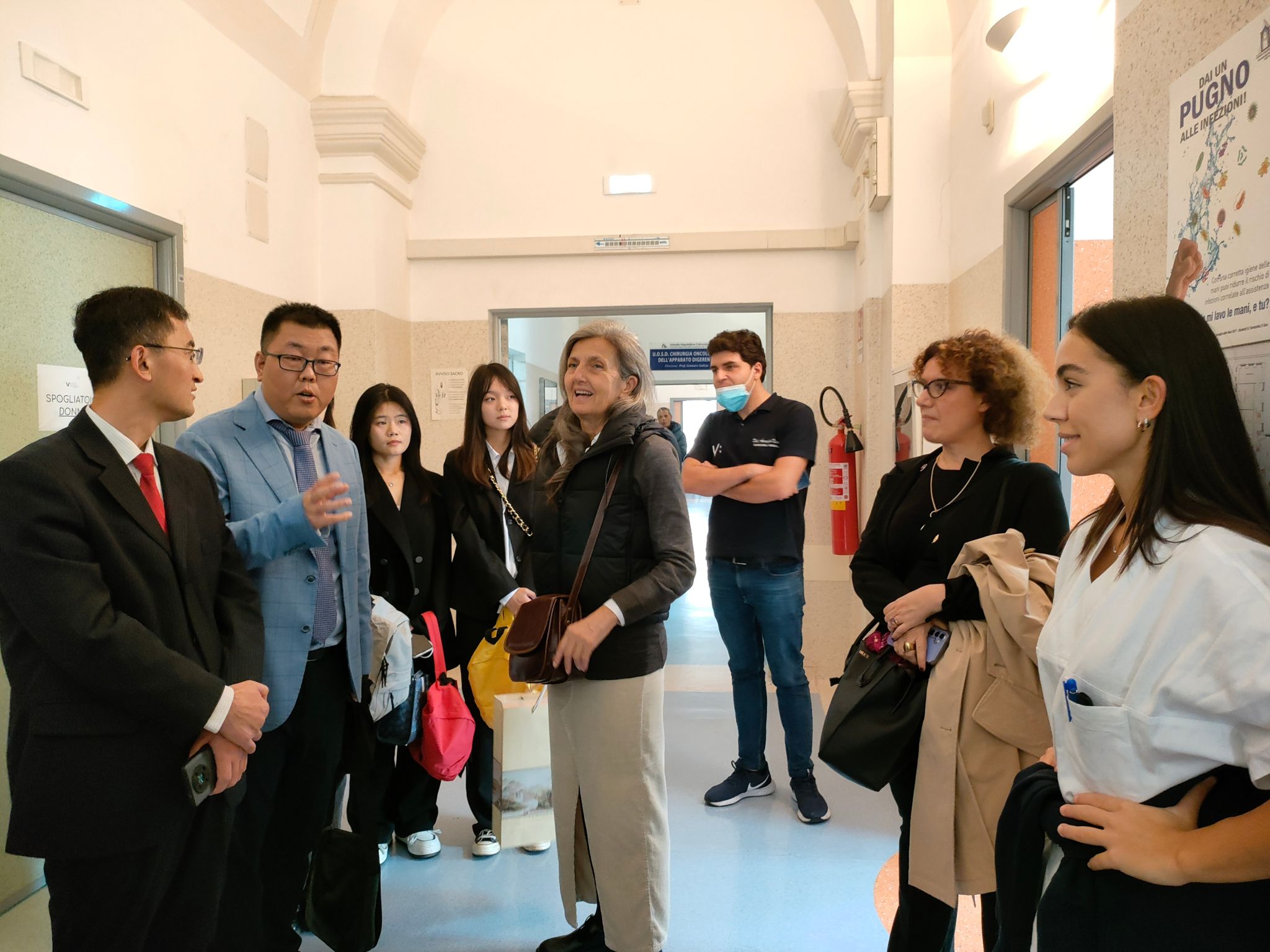 之后,Eva Lieto教授带领代表团参观了学校附属医院万维特里医院。Eva Lieto教授的讲解,让代表团了解到了医院的相关护理体系及学生管理和实习安排,其教学与实践一体化的培养体系为我院护理教育教学的改革发展和人才培养提供了借鉴和启示。