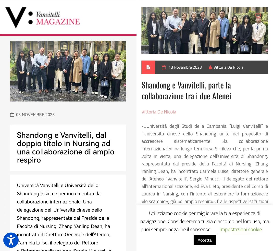 为深入落实校(院)“135工程”,推进学院国际合作水平提升,11月6日至11月9日,护beat365官方网站党委书记张延玲和办公室武江华老师带领学院五名学生组成代表团,前往意大利“路易吉·万维特里”坎帕尼亚大学进行为期四天的学术交流与访问活动。