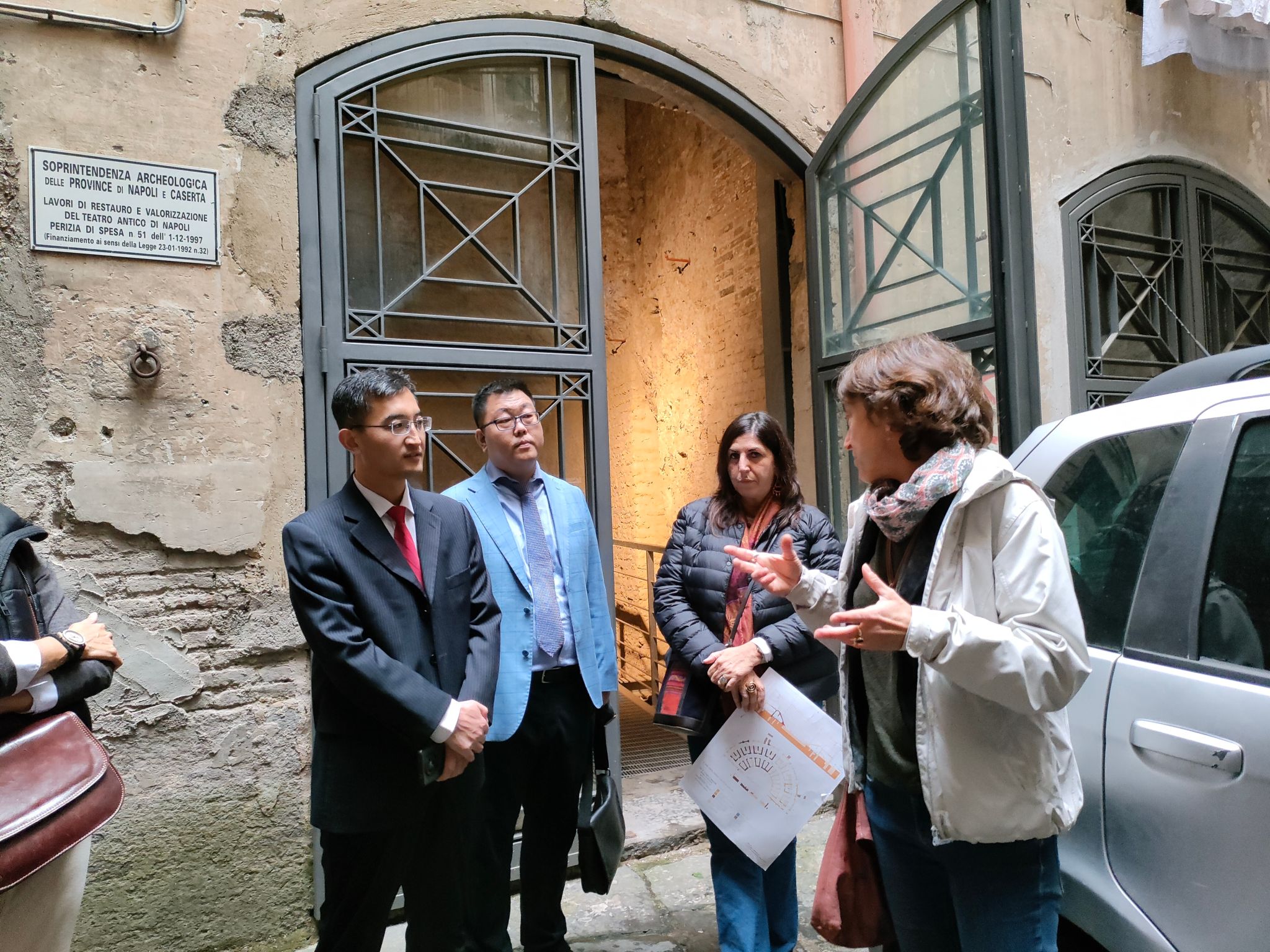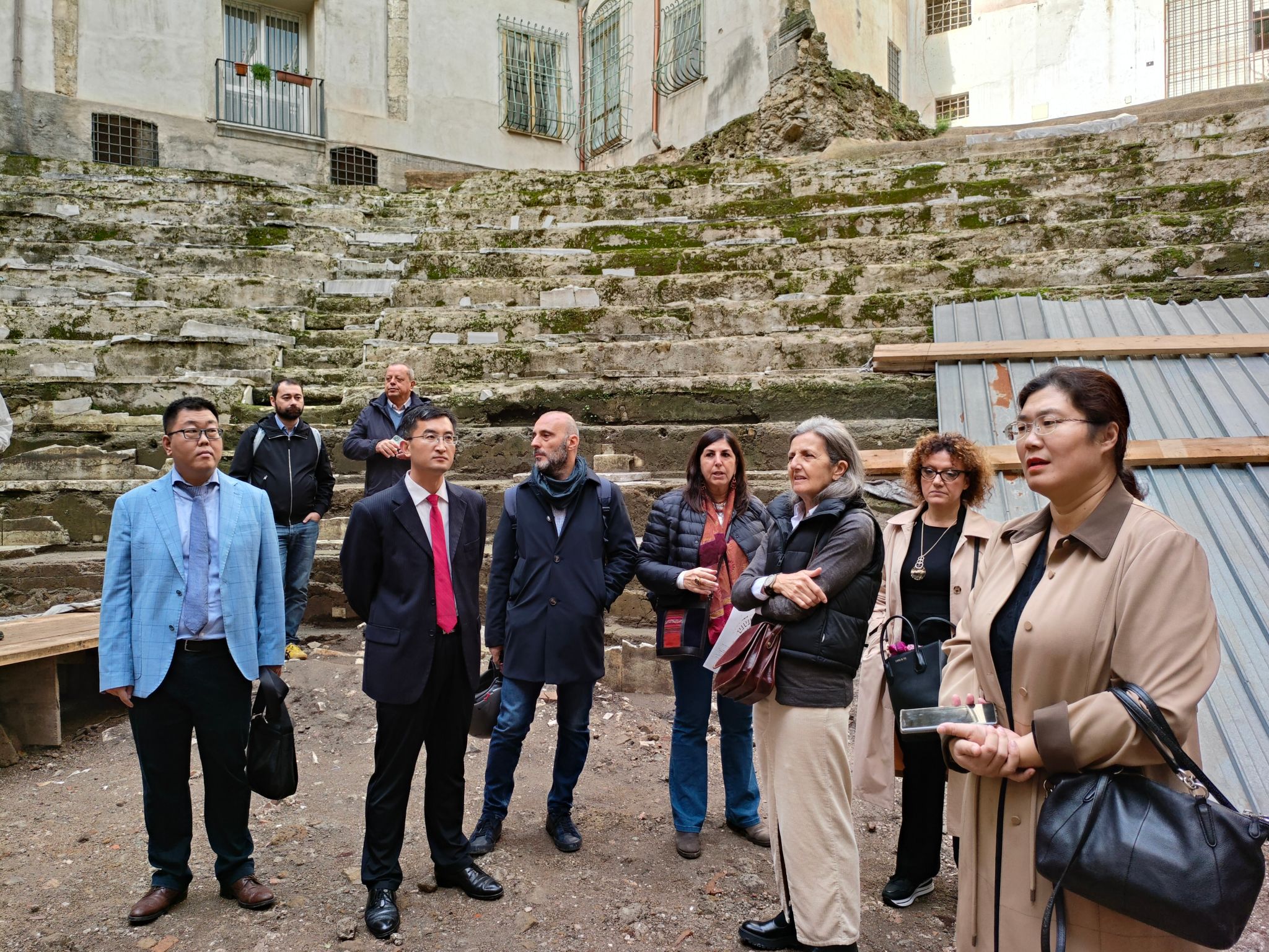 令人兴奋的是,Eva Lieto教授为表示对代表团的重视和欢迎,带领代表团参观了目前尚未对外正式开放的希腊-罗马剧院遗址。他们特地联系意大利考古学家为代表团介绍了该遗址的相关历史、目前的研究进展和原貌恢复建设情况。在场的各位深刻感受到了意大利文化的魅力。